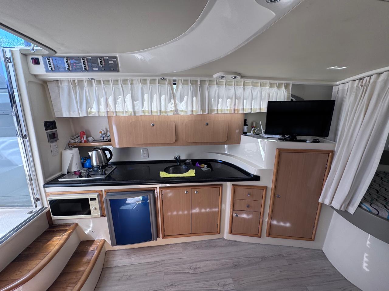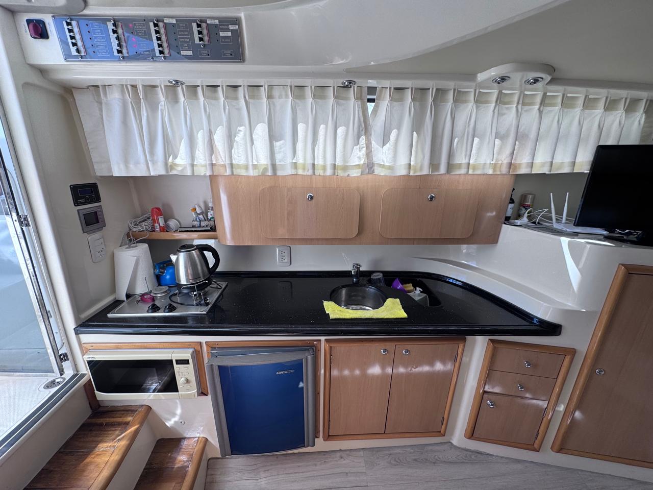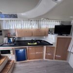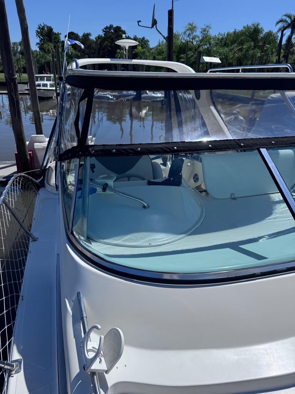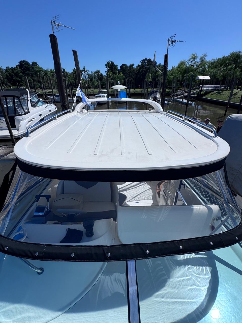 EQUIPAMIENTO: vhf, audio, ecosonda, compás, malacate eléctrico, termo tanque, inodoro eléctrico, duchador en popa y baño, cocina , heladera , faro robotico, cargador de batería, aire acondicionado , microondas, grupo electrogeno.