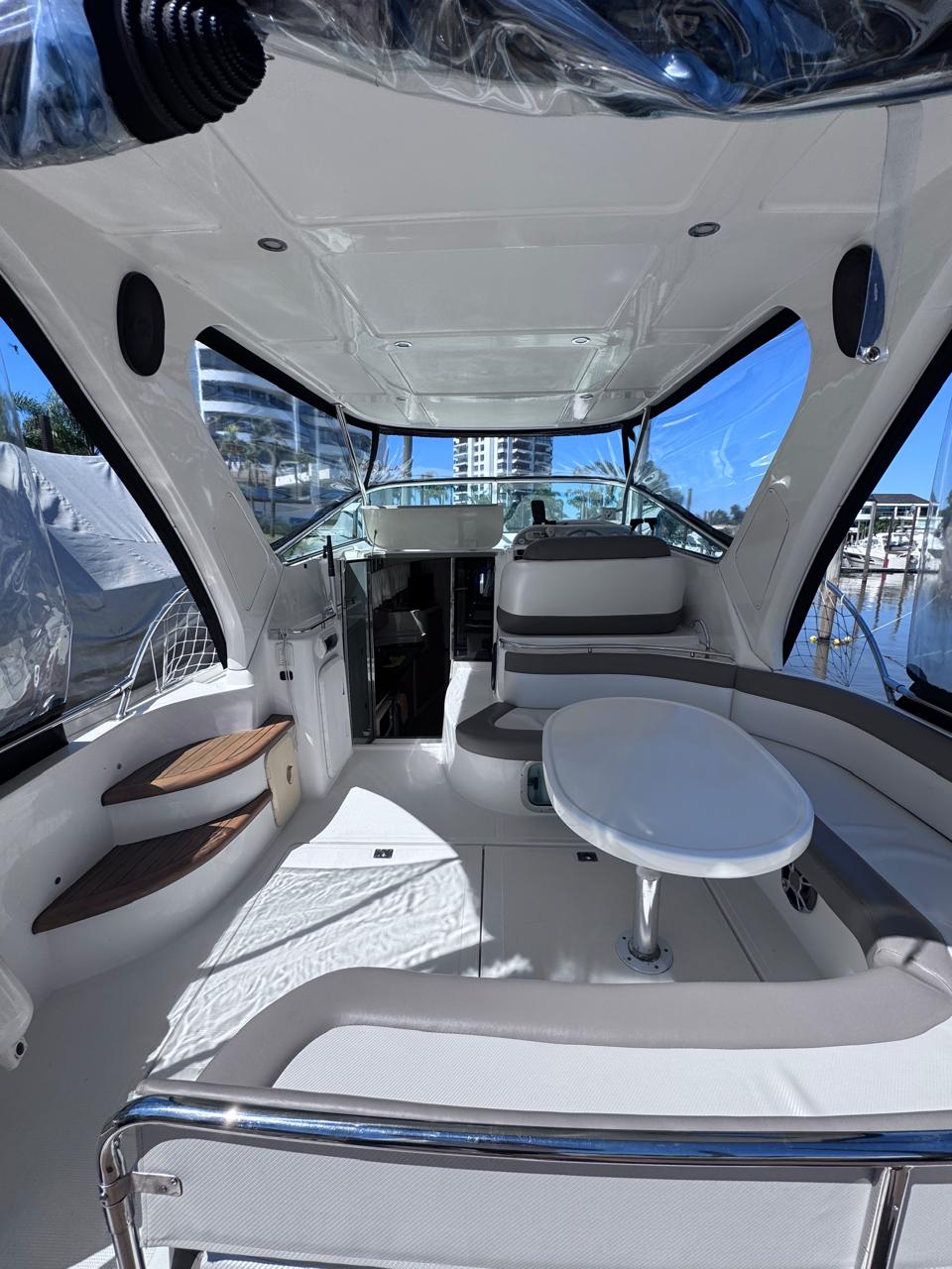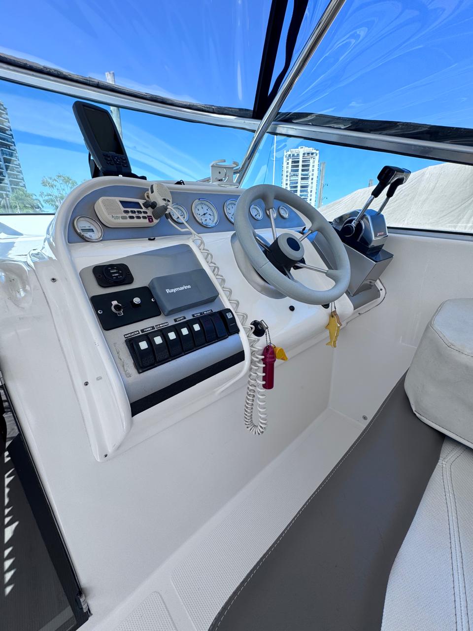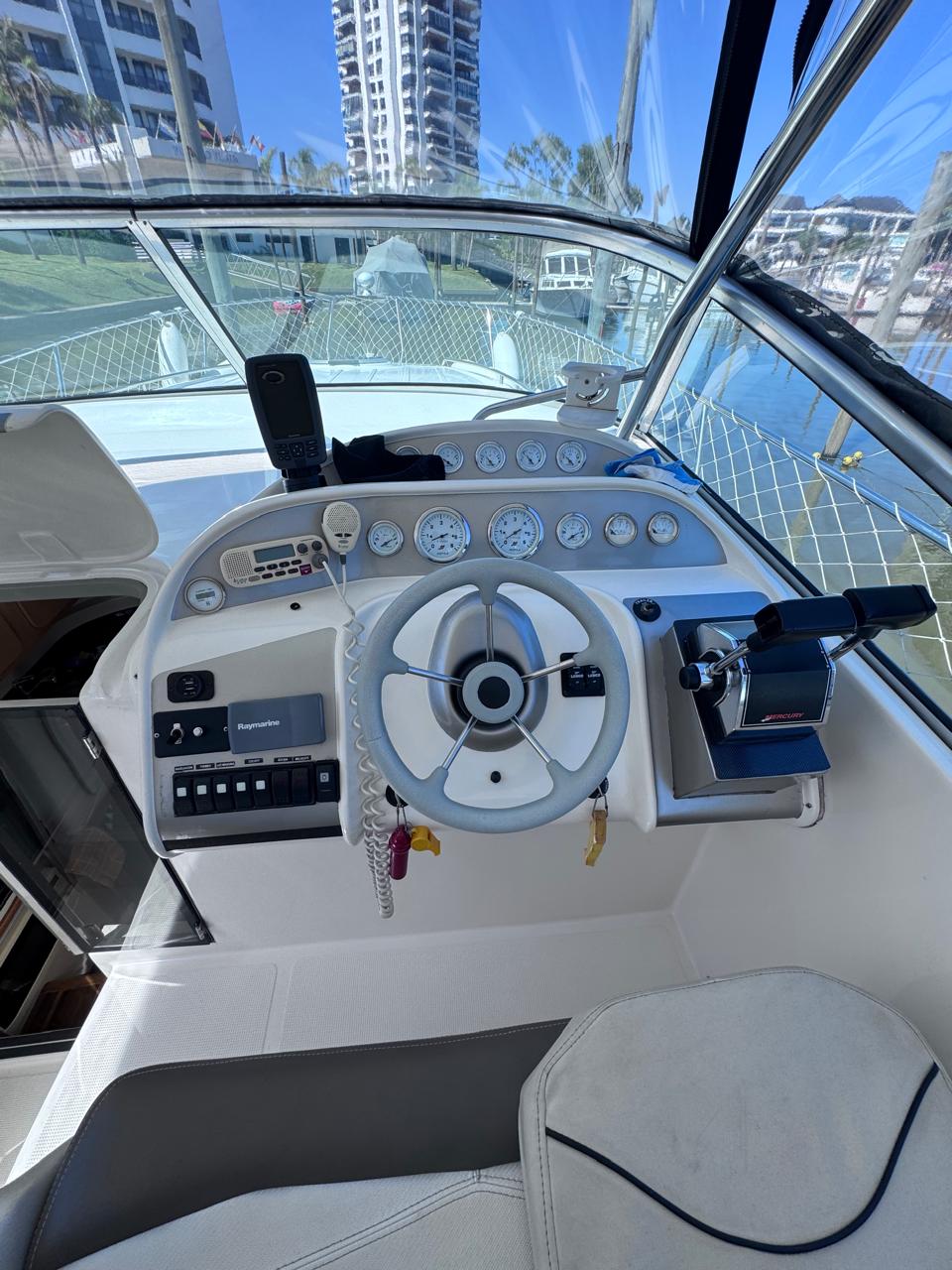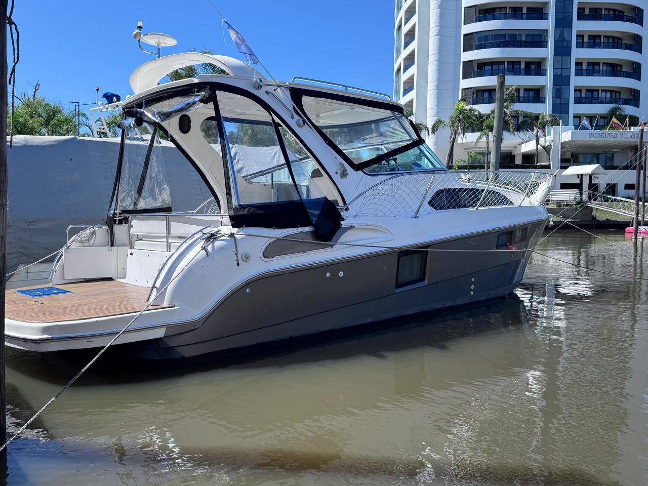 EQUIPAMIENTO: vhf, audio, ecosonda, compás, malacate eléctrico, termo tanque, inodoro eléctrico, duchador en popa y baño, cocina , heladera , faro robotico, cargador de batería, aire acondicionado , microondas, grupo electrogeno.