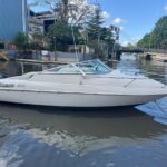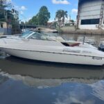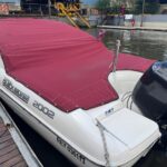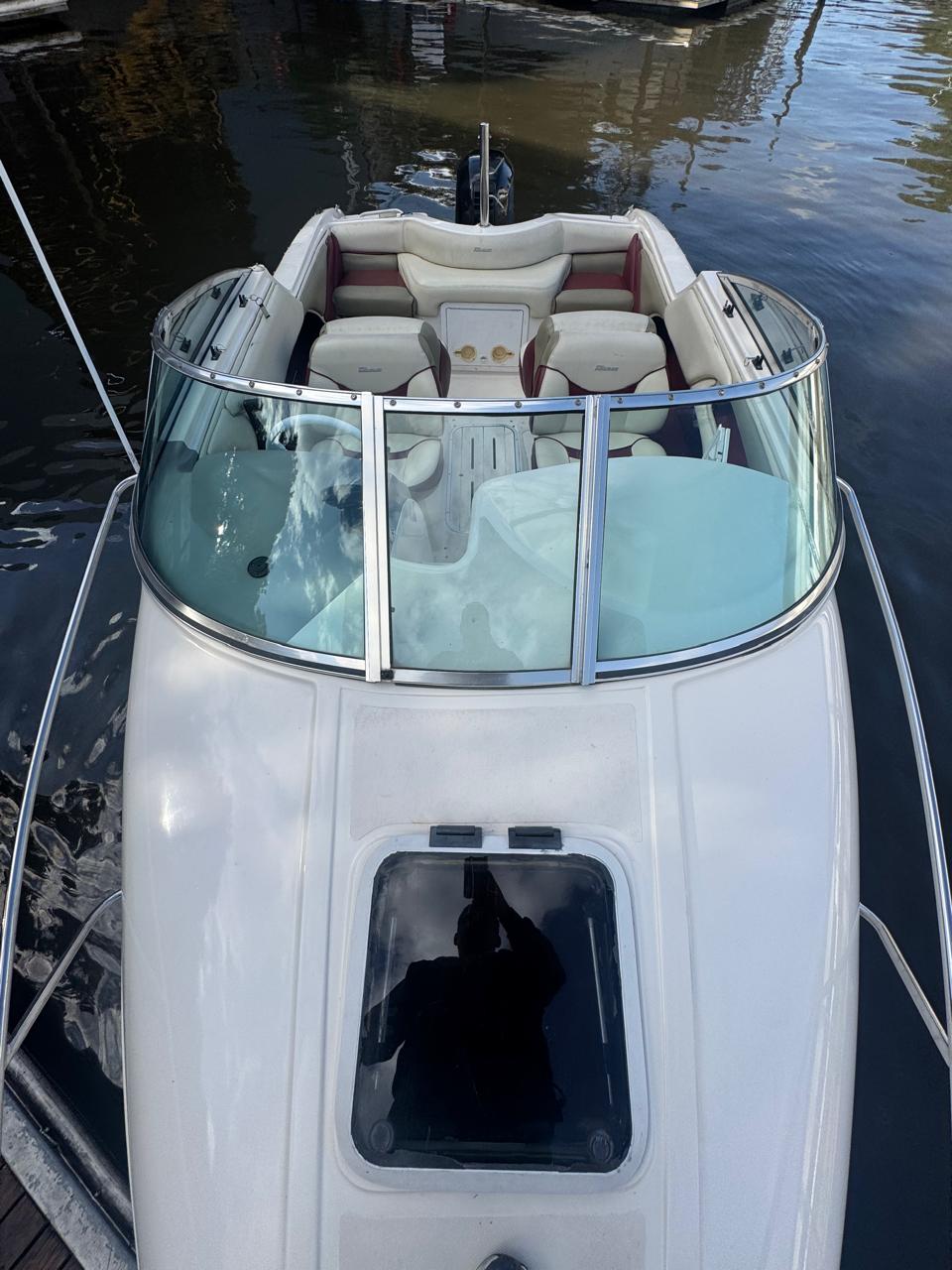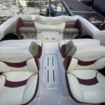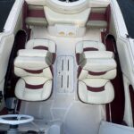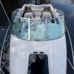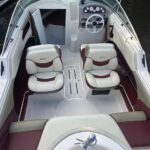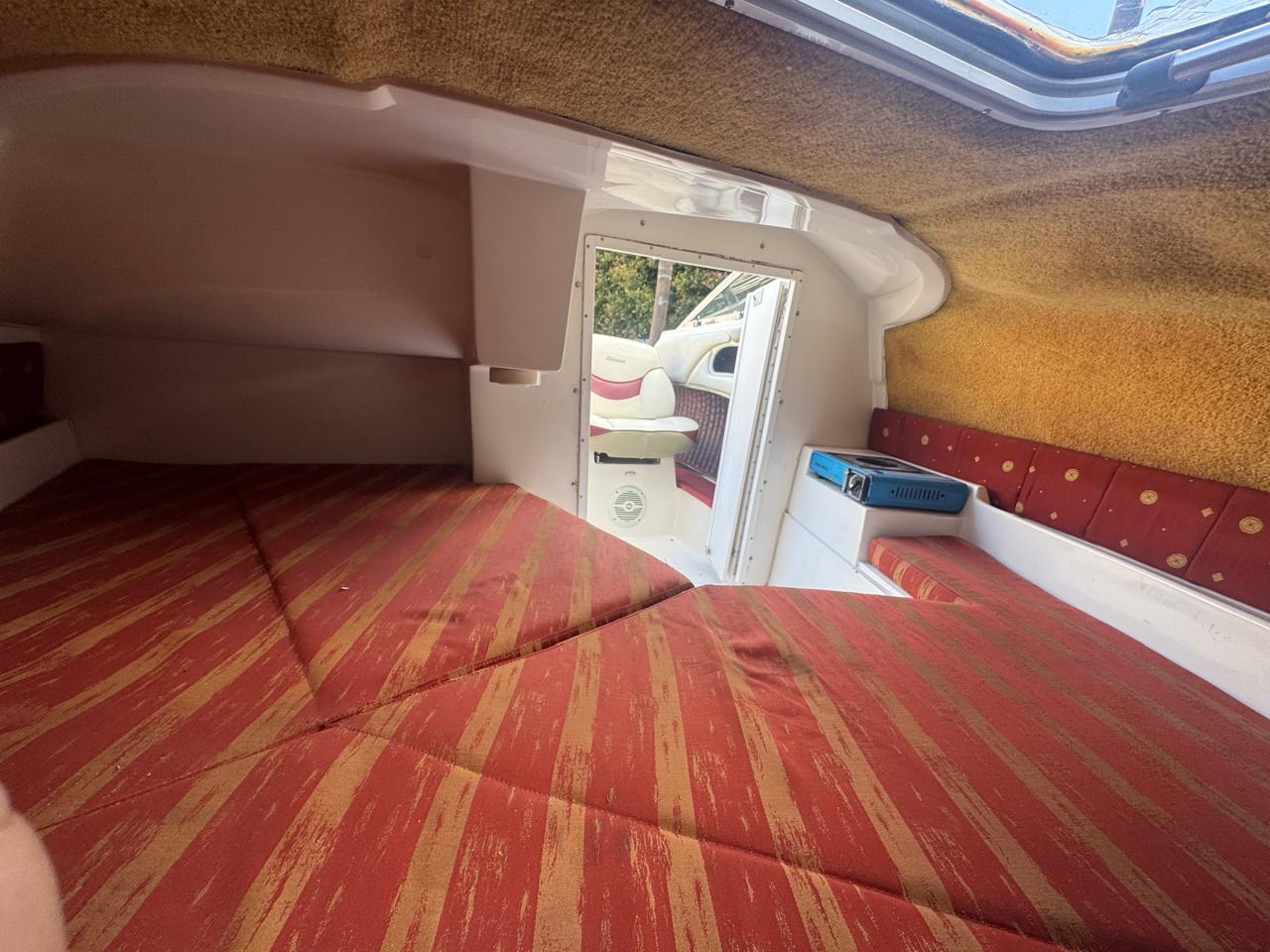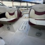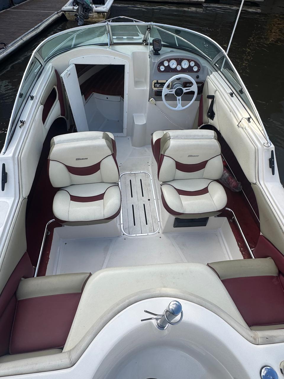 Cockpit con asientos back to back y asientos de popa sobre ambas bandas, estiba grande bajo ambos asientos, planchadas de popa a ambos lados del motor, debajo de las planchadas escalera de popa telescópica y heladera de hielo con drenaje. Barra de esquí.