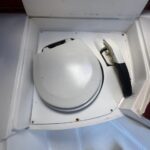 Radio VHF con antena plegable.